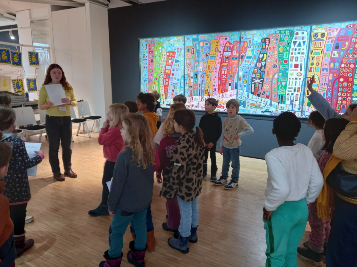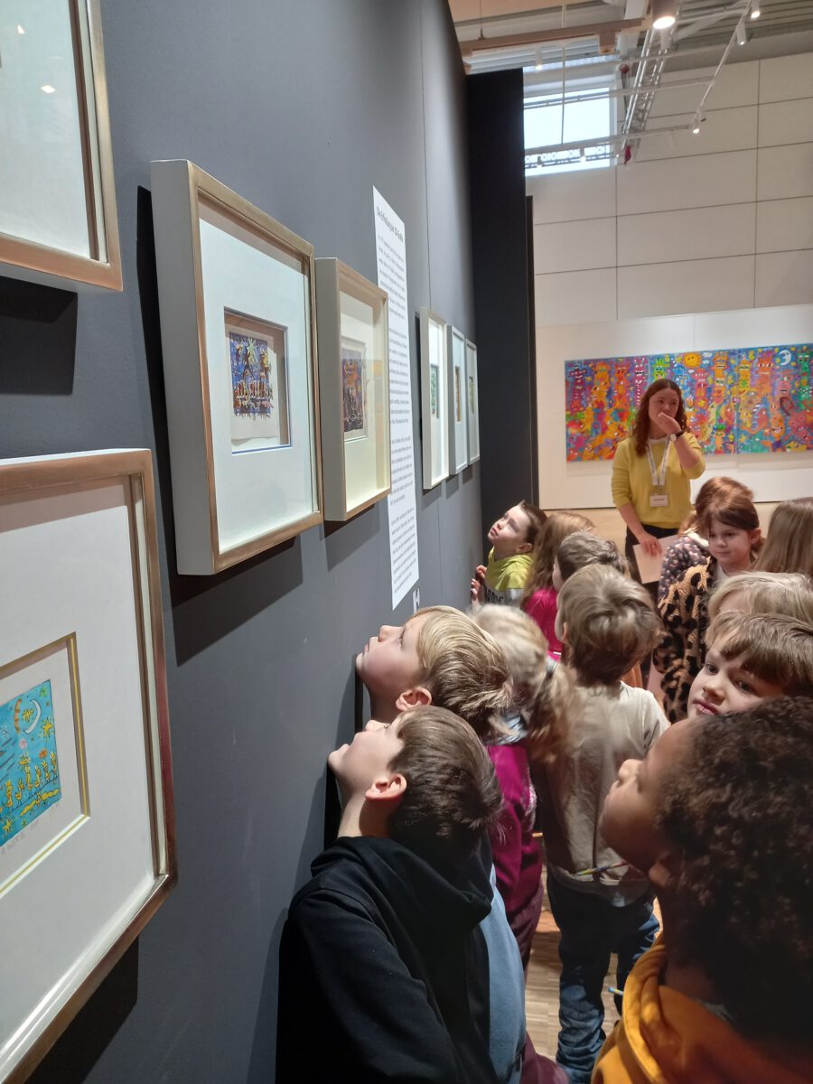 Ganz besonderer Besuch kam in die Köstlinschule: James Rizzi persönlich, der den Kindern von New York, von seinen ersten Bilden und seinem Leben erzählte. In der darauffolgenden Woche besuchten alle Klassen der Köstlinschule die Ausstellung von James Rizzi. Im Anschluss daran wird eine große Wandmalerei im Stil von James Rizzi in unserem Schulgebäude entstehen, an dem alle Klassen mitarbeiten.