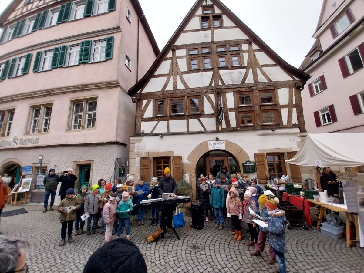 Die Kinder beteiligten sich auf ihre Weise: Sie trafen sich auf dem Weihnachtsmarkt und sangen ihr komplettes Winter- und Weihnachtsliederrepertoire vor.